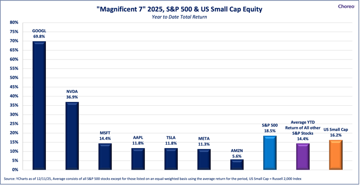 The Choreo team is hyper-focused on long-term investment management to closely align investor goals and objectives. The market environment will change over time, whether good or bad. Taking a diversified approach is a tool used to optimize outcomes. As 2025 comes to a close and 2026 begins, we take a moment to recognize the most important asset class in our lives: our friends, our families, and of course our clients. We wish you and your family a happy and healthy new year and we look forward to a fruitful 2026! As always, please reach out with any questions or comments.